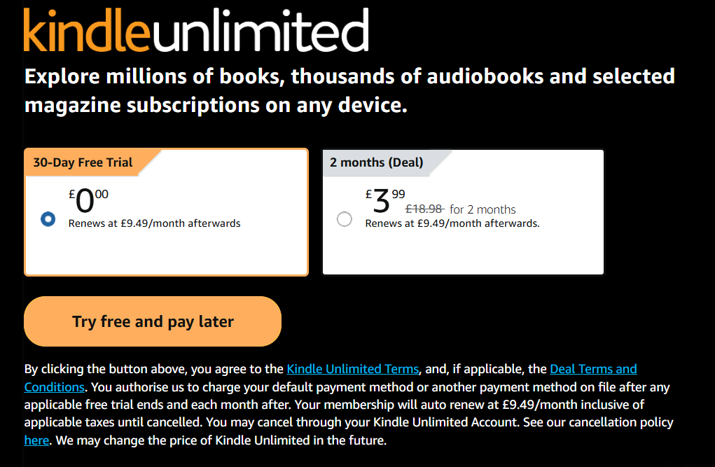 - Kindle Unlimited – all‑you‑can‑read access to best‑sellers, new releases, and exclusive titles